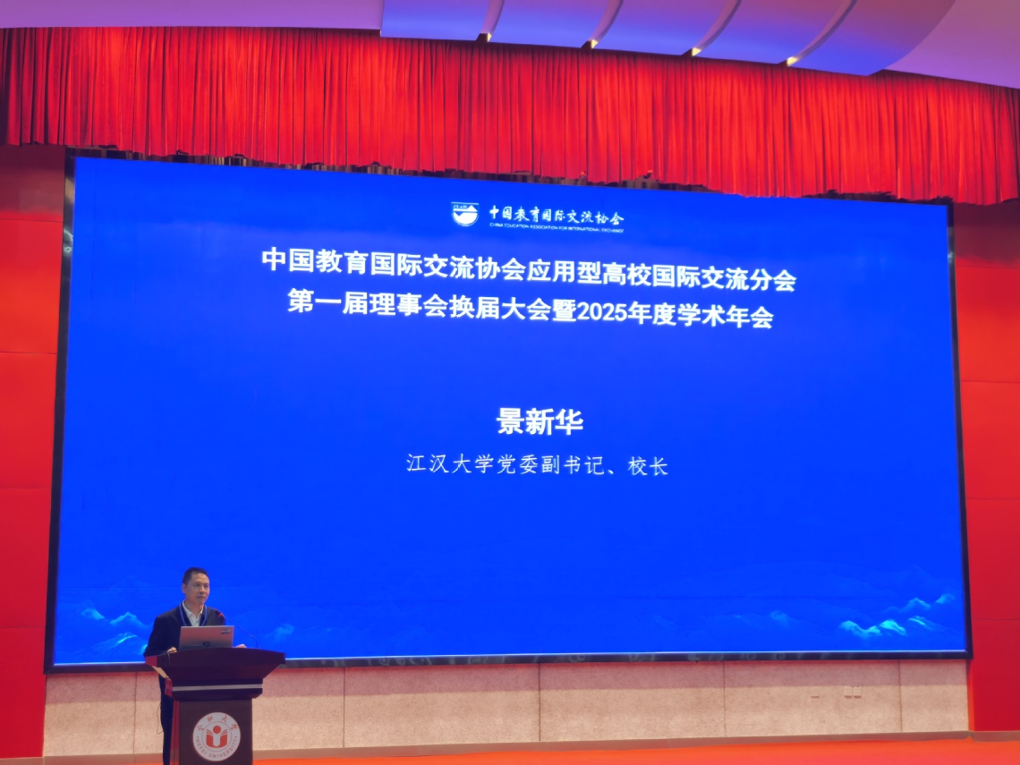 江大新闻网讯 10月15日,中国教育国际交流协会应用型高校国际交流分会第一届理事会换届大会暨2025年度学术年会在合肥大学举行,来自全国一百多所成员单位代表参加会议。江汉大学入选新一届理事会理事单位,校党委副书记、校长景新华当选新一届理事会副理事长,并在学术年会上讲话。