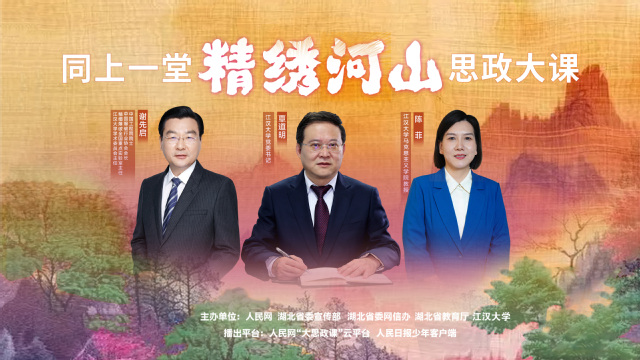 学校与人民网、湖北省委宣传部、湖北省委网信办、湖北省教育厅联合打造的“精绣河山”思政大课于3月31日晚在人民网“大思政课”云平台、《人民日报》少年客户端开讲,累计观看超2000万人次。承办“青春华章 我们的回答”网络大思政课主题活动,相关报道全网阅读量近12亿次。