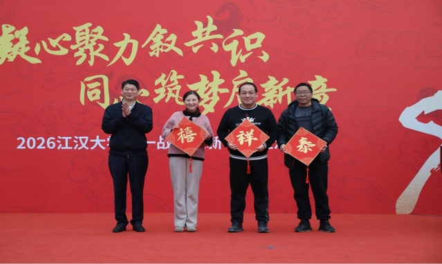 江大新闻网讯 1月15日下午,江汉大学“凝心聚力叙共识 同心筑梦启新章”——2026年统一战线迎新年联谊活动在师生服务中心一楼大厅举行。活动以“凝心聚力叙共识同心筑梦启新章”为主题,旨在通过轻松愉悦的联欢形式,为统战成员搭建交流平台、传递组织关怀、凝聚奋进共识。